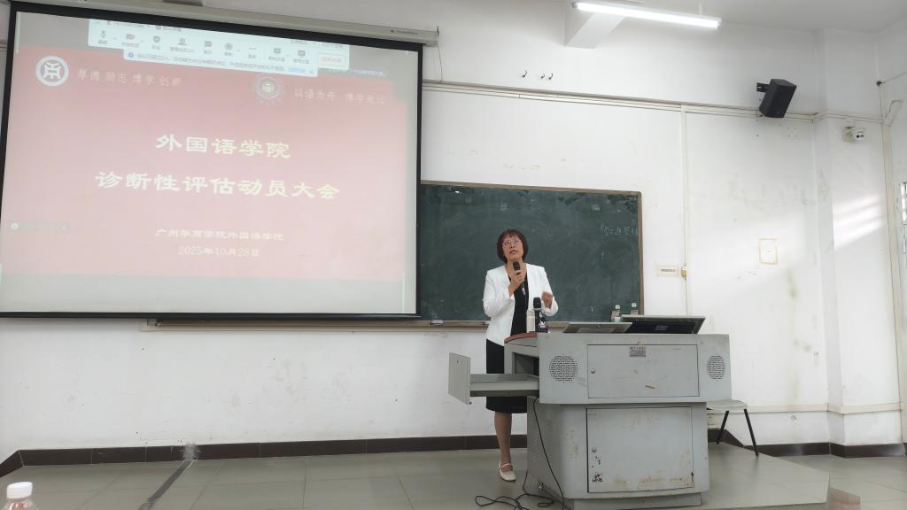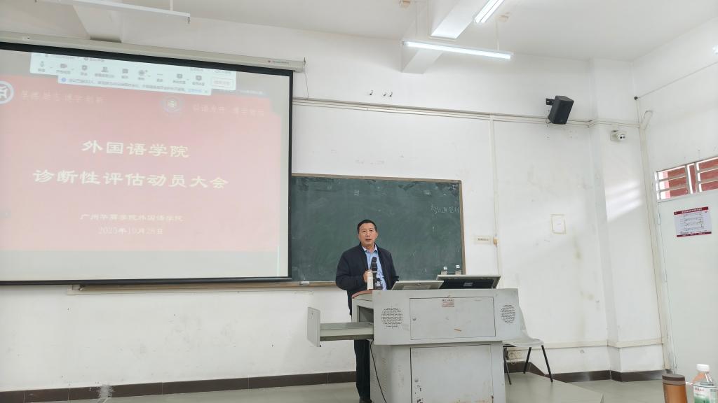 为全面贯彻落实学校本科教学工作合格评估精神,扎实推进评建工作,2025年10月28日下午,外国语学院在励志楼B402会议室召开本科教学诊断性评估动员大会。广州华商学院副校长焦方太、学院领导班子及全体教职工齐聚一堂,共同吹响迎评攻坚的冲锋号角。
